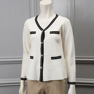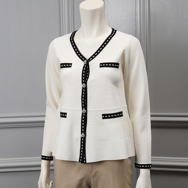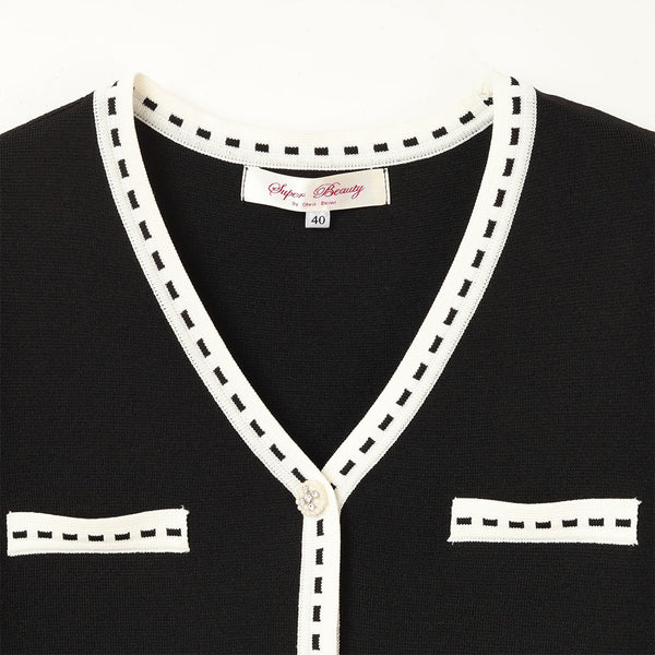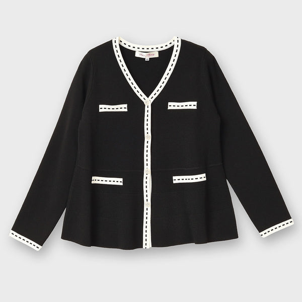 ステッチ風トリムVネックカーディガン