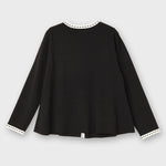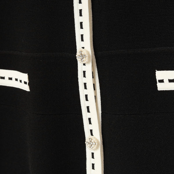 フロントに並ぶパールビジューのボタンが、クラシカルで華やかな印象をプラスします。