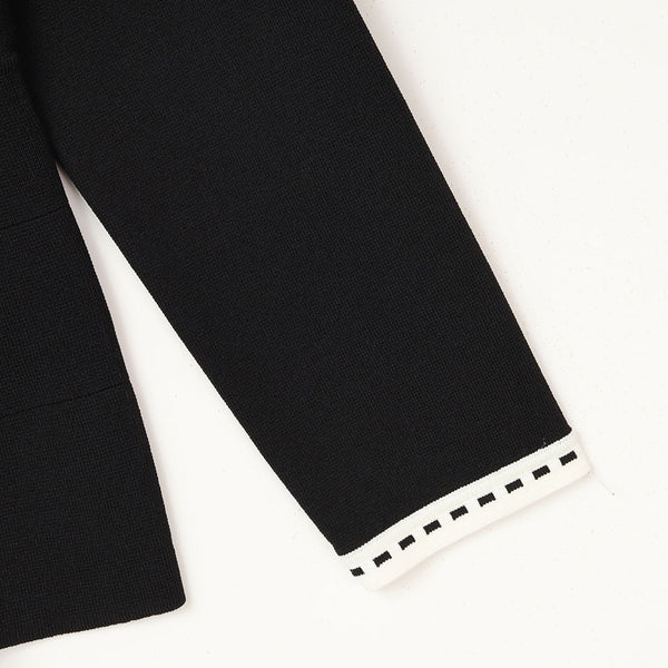 シンプルなデザインの中に、胸元・首から前立て・袖口・飾りポケットへ丁寧に施されたステッチパイピングが、凛とした上品さを添えています。