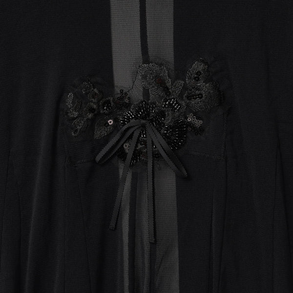 背中にはスパンコールと花の装飾が施されており、さりげない華やかさを演出。